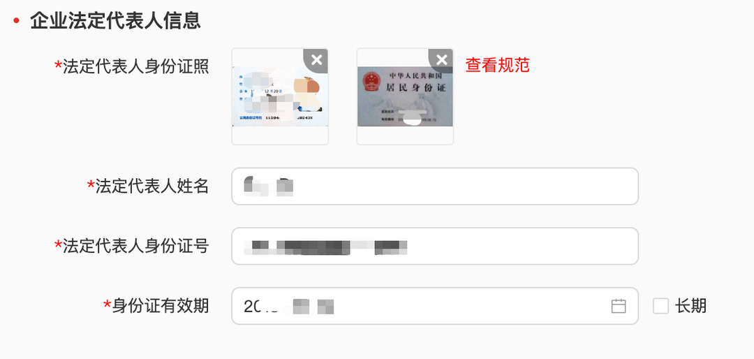 5、提交法定代表人身份证信息。然后进行实名认证。