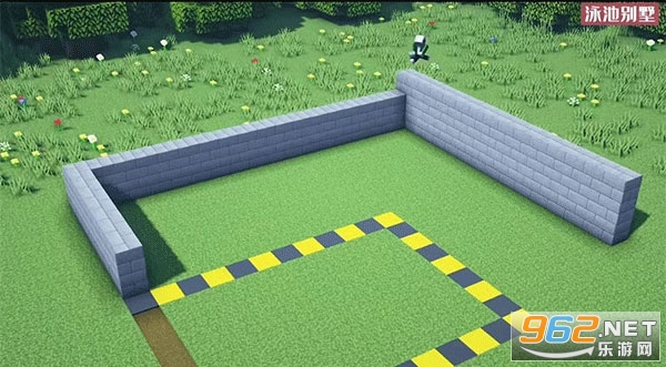 5、在使用蓝色玻璃做一面墙,围墙下面在垫一层输液装饰,让结构更加美观。