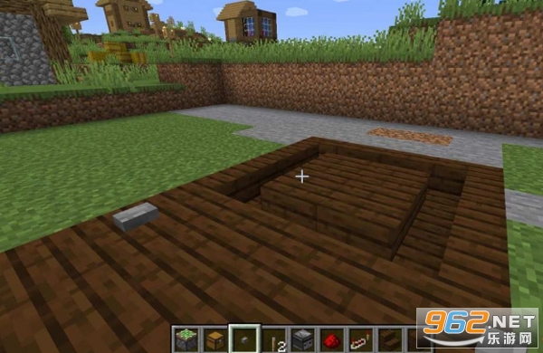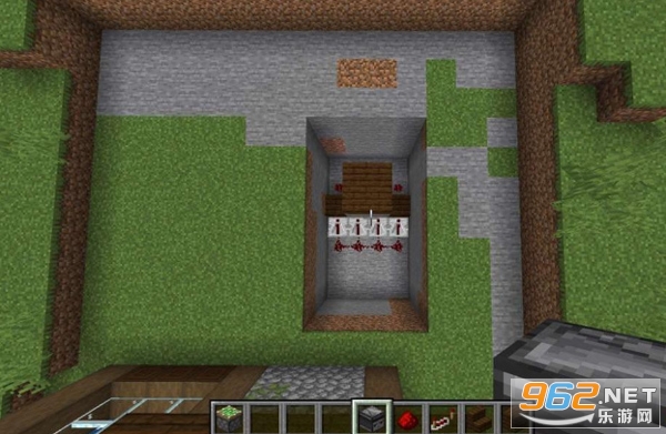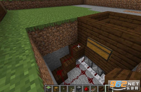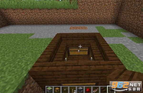 7、最后我们再铺放木板进行隐藏,再摆好1个按钮就做好我们的地板机关啦