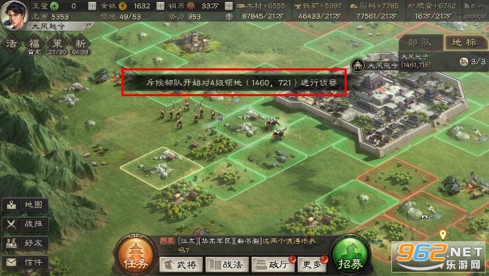 2、会自动派出一队斥候进行侦查,这种侦查方式只能同时进行一次。