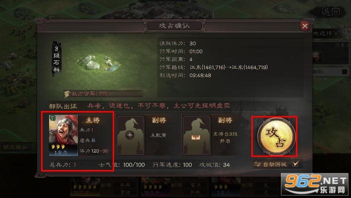 2、然后用这个1兵力武将对敌方玩家领地进行攻占。