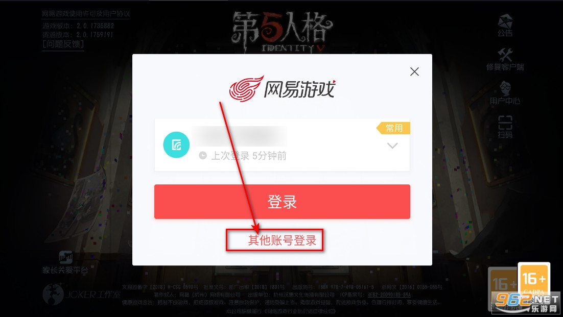 4、此时我们就到了登陆界面,我们不要选择常用的账号,在下方“选择其他账号”登录游戏。