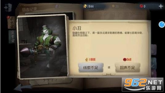 目前监管者阵营除了一个免费角色厂长,其余都需要购买。而从目前的版本来看,小丑所需的价格是最便宜的,只需要1888线索或者368回声就可获得。而且小丑在游戏中有很强势的表现,技能加速冲刺,在军工厂和新地图红教堂都很好用,特别是二阶技能,能冲刺的更远,速度更快,很强势,所以强烈推荐第一个入手。
