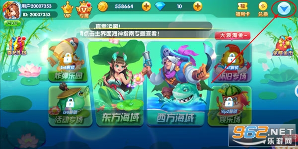 1、登录姚记捕鱼炸翻天游戏,进入游戏主界面,如下图所示,在右上角点击展开。