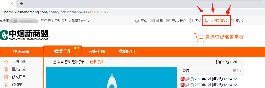 1、首先,自己需要打开辽宁烟草电子商务网站。
