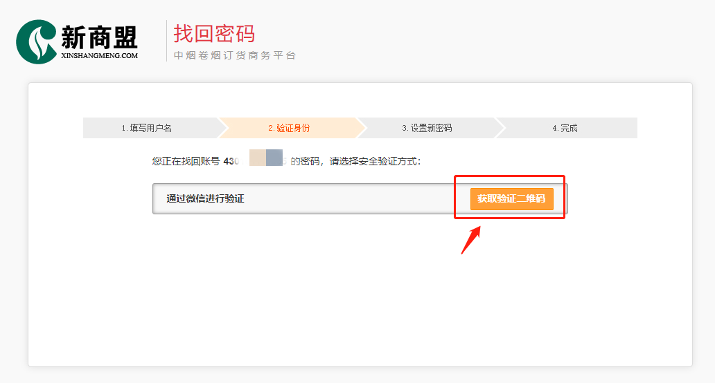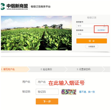 2、输入新商盟账号(烟草证号)和验证码,然后点击下一步:
