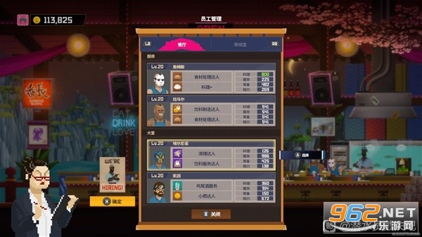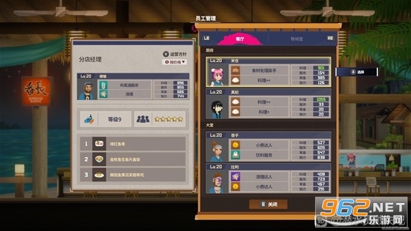总结一下另一套推荐的,会更省事一点:主店用埃尔尼诺和德瑞当服务员;分店用杏子当经理,比利和猛禽当服务员。