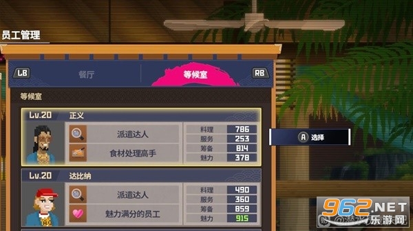 大概说一下原因:分店经理只能是德瑞,因为分店要做9级食材的话,经理的料理值必须在500以上。同时德瑞有两个服务技能,如果不用他,分店的技能没有办法配齐。因此,分店的服务员也可以确定,两个小费达人也能多赚钱。另外拉乌尔也是必备的厨师,因为有他饮料卖的更贵。其他的三个厨师靠料理值确定,食材处理达人到钻石店铺时倒是用处不大。