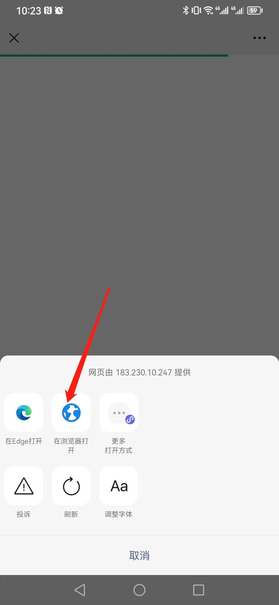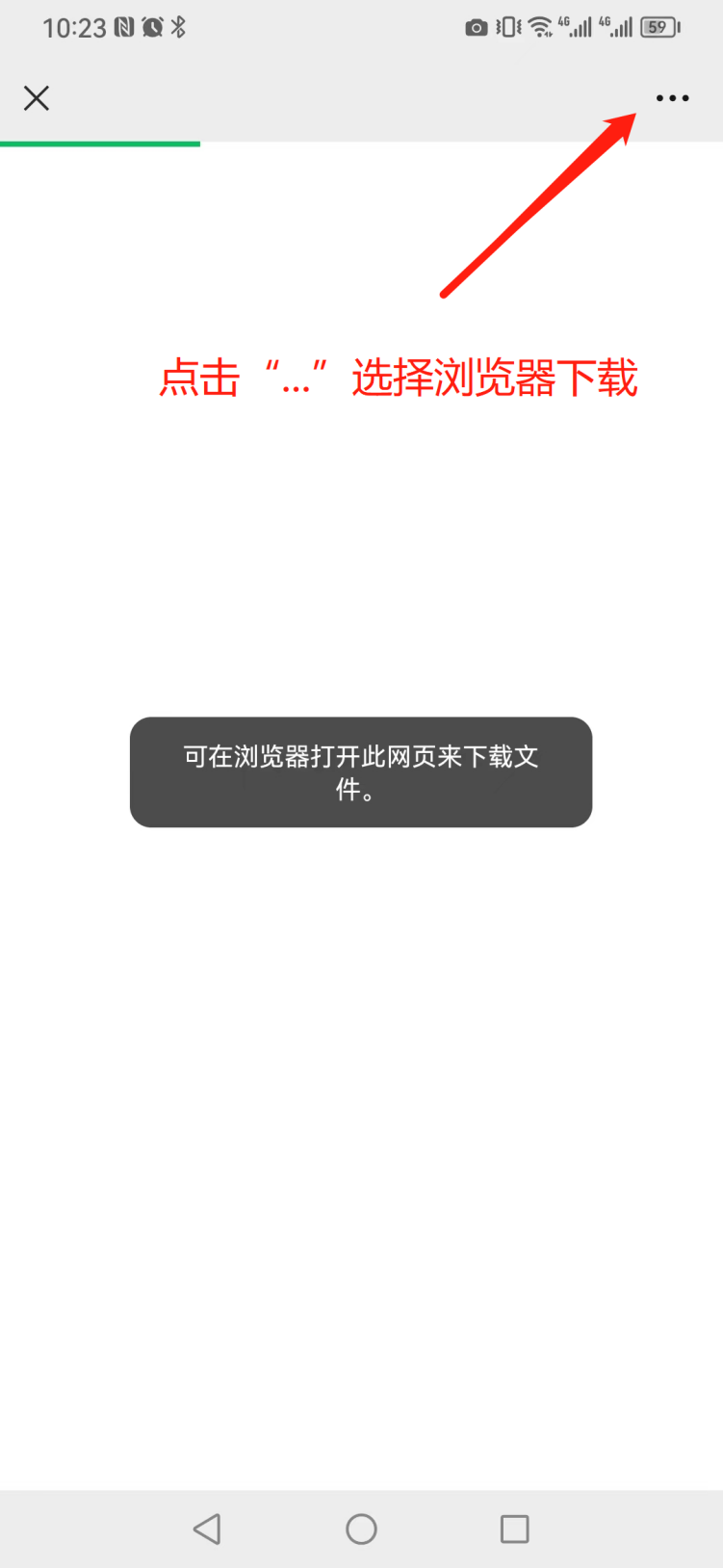 微信扫码后弹出空白界面,点击右上角“...”使用浏览器打开并下载