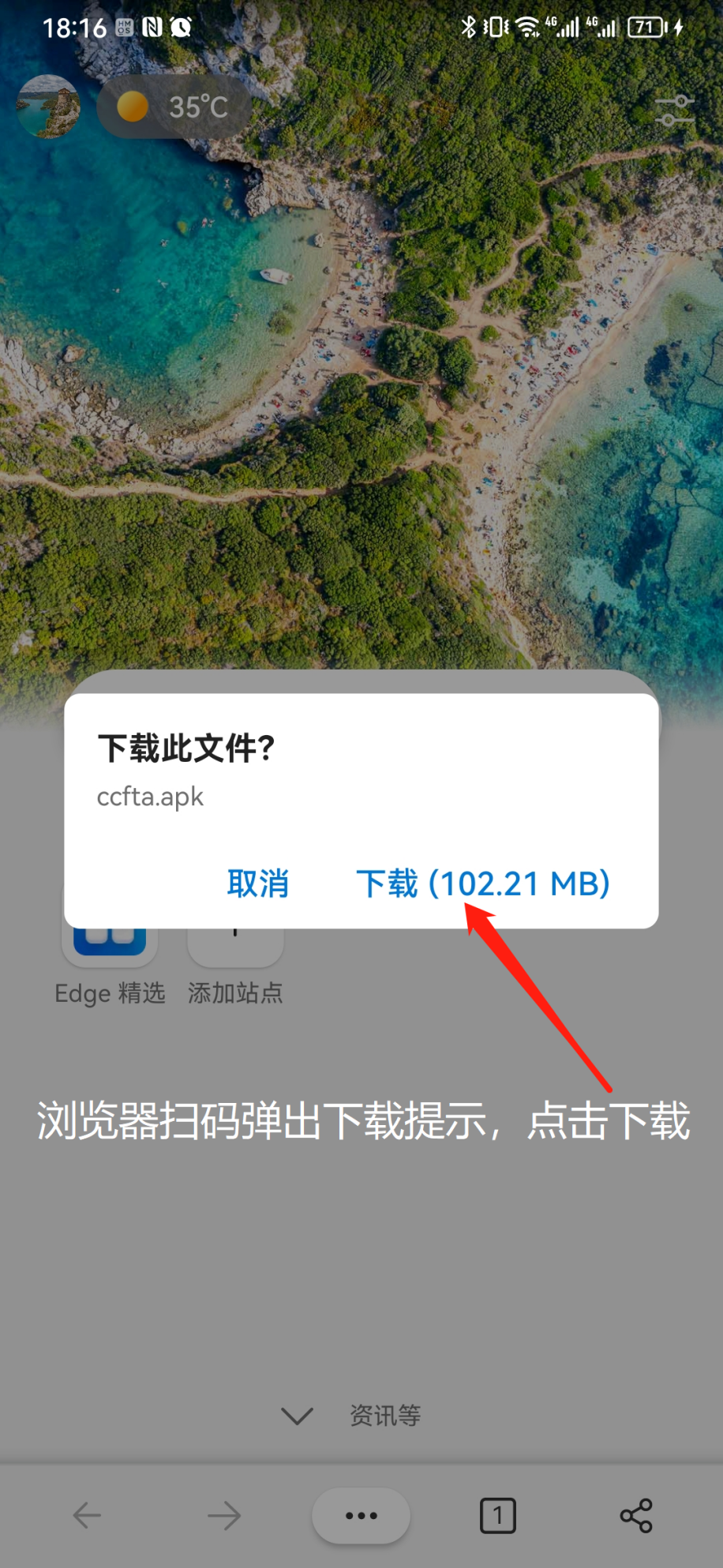 浏览器扫码后弹出下载提示,点击下载