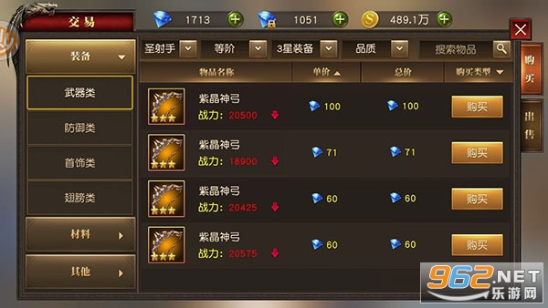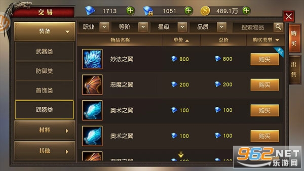 2、您可以根据这些交易分类,迅速地找到您想要购买的道具装备。