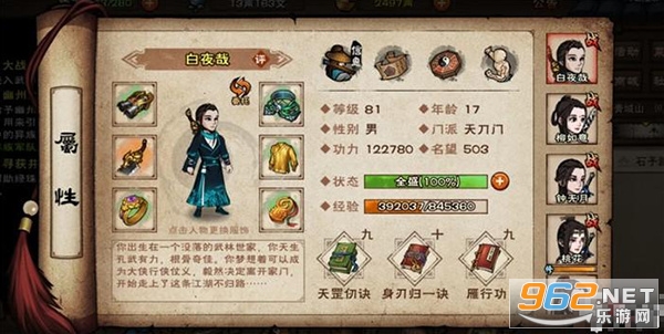 老江湖Ⅰ: 此人自小在江湖上闯荡,对于一些江湖世故看得比较透彻,打斗阅历增加10%。