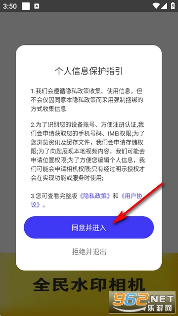 1、下载安装好第一次进入先查看个人信息保护指引及隐私协议。