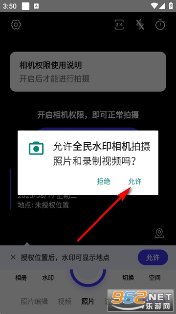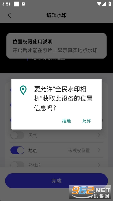 4、编辑水印要改位置的需要获取相应的位置权限。
