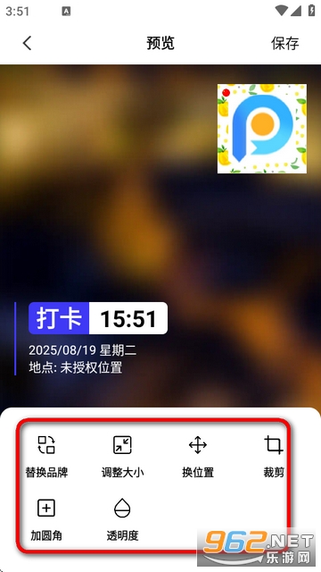 3、选择品牌logo可以自由替换,调整大小,换位置选操作。
