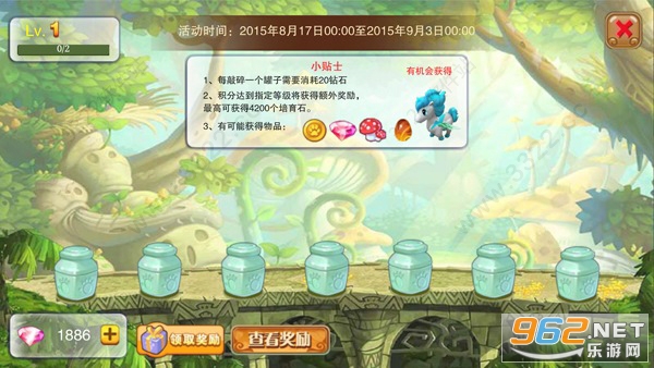 每激活神兽的一种状态(兽蛋、1阶、2阶或3阶),获得3个钻石奖励。每个神兽最多可获得12个钻石,且不可重复领取。