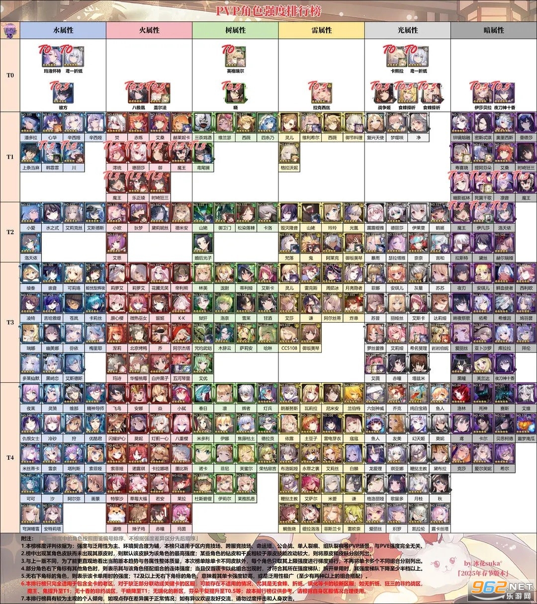 另外,新区开区时由于个别天敌卡的缺席,本榜不一定适用,可能存在个别角色暂时超越原本梯级的情况,但随着各角色的逐渐复刻,各卡牌强度会逐渐符合本表所述;对于具有pvp属性的跨服玩法,本榜完全适用。