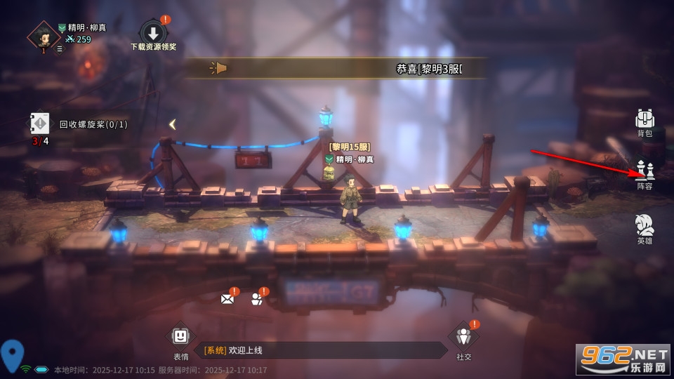 在玩家进入游戏后我们可以在右边看到阵容搭配的入口,点击即可进入阵容界面。