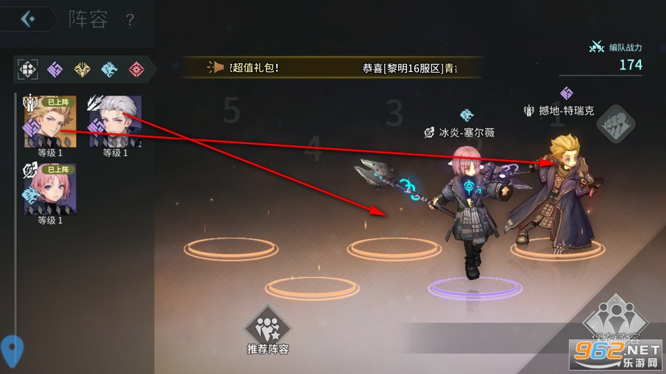 我们在上阵英雄后我们也可以根据自己的喜好拖动英雄对英雄的站位进行相应的调整。