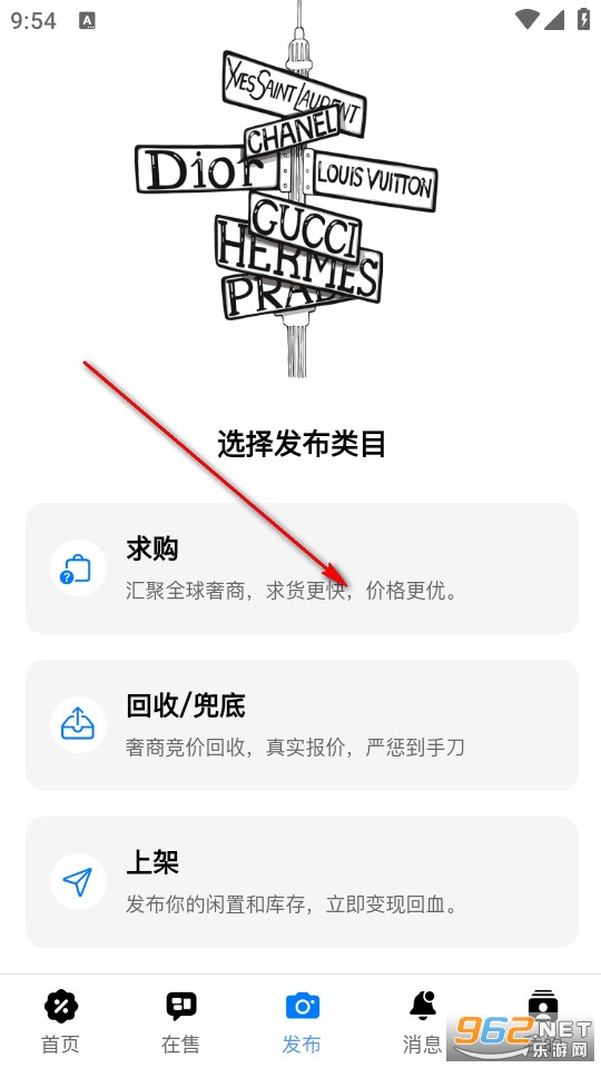 在选择发布类目的界面选择求购。