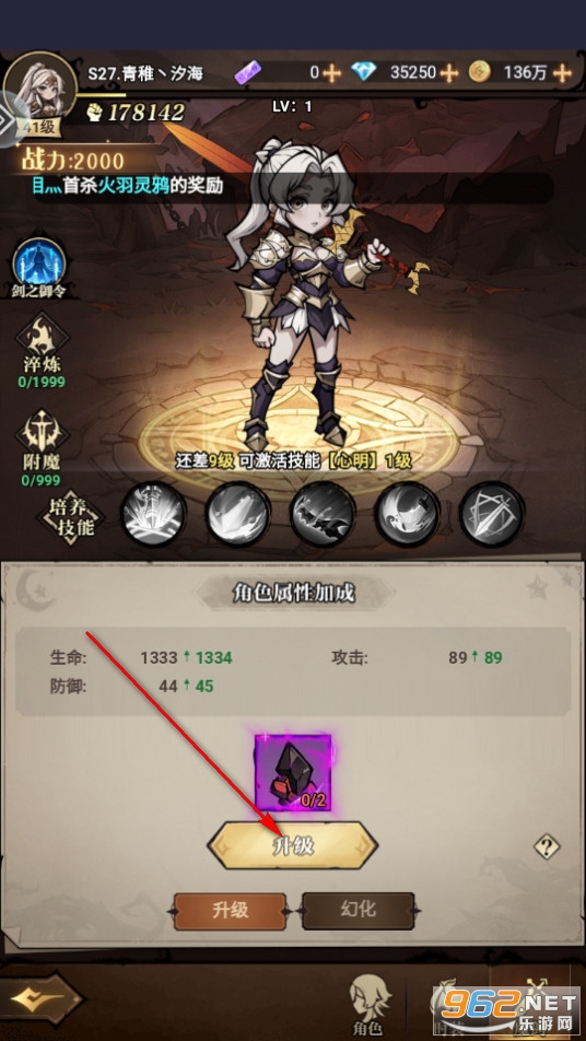 切到魔剑属性详情页面后点击所需材料下方的升级即可进行魔剑升级。