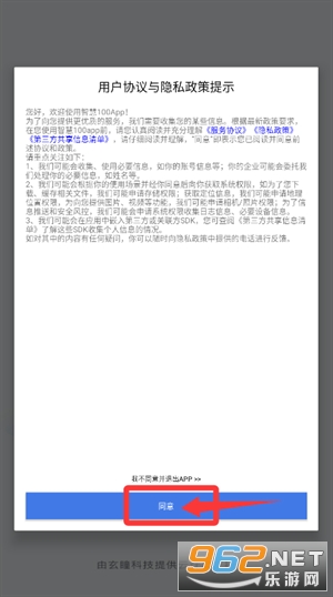1、在协议提示页面点击同意,即可进入账号登录环节。