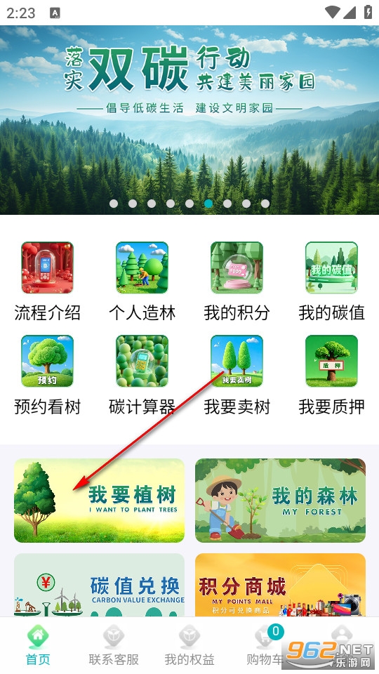 在首页找到我要植树,点击进入树木商城。