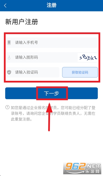 5、输入手机号,图形码,短信验证码,点击下一步即可
