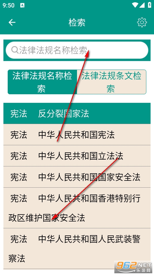 点击上方搜索栏即可进行法律法规的检索,我们也可以根据条文进行检索。