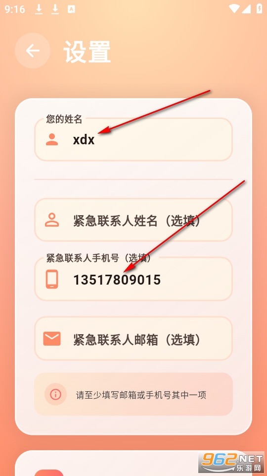 2.设置快捷:只需要输入相应紧急联系人的信息即可立即使用功能。