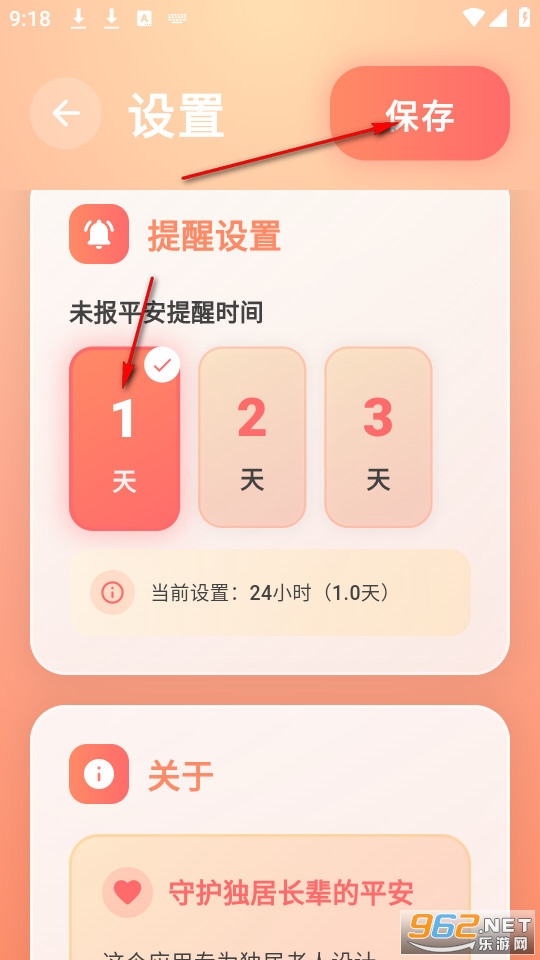 点击设置未报平安提醒时间,然后点击右上角进行保存返回主页。