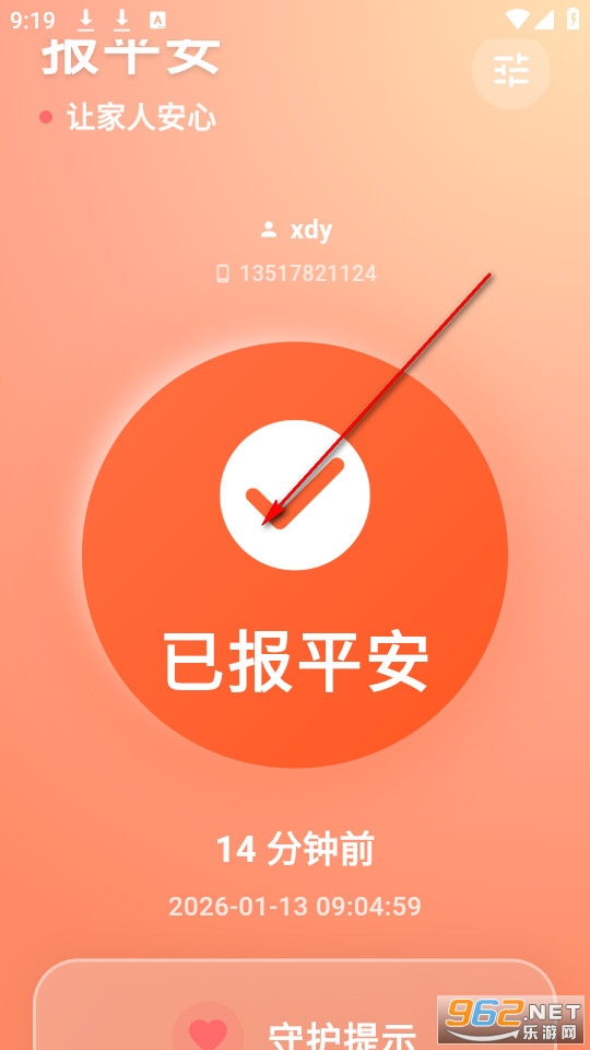 在首页只需要点击中间的“报平安”按钮即可完成打卡。