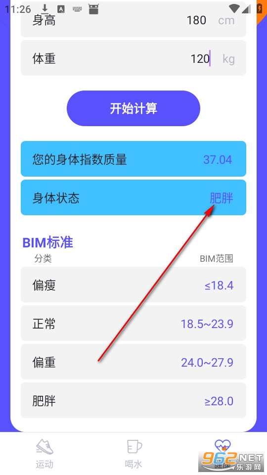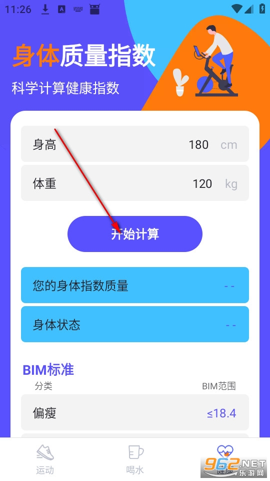 填写身高体重点击开始计算。