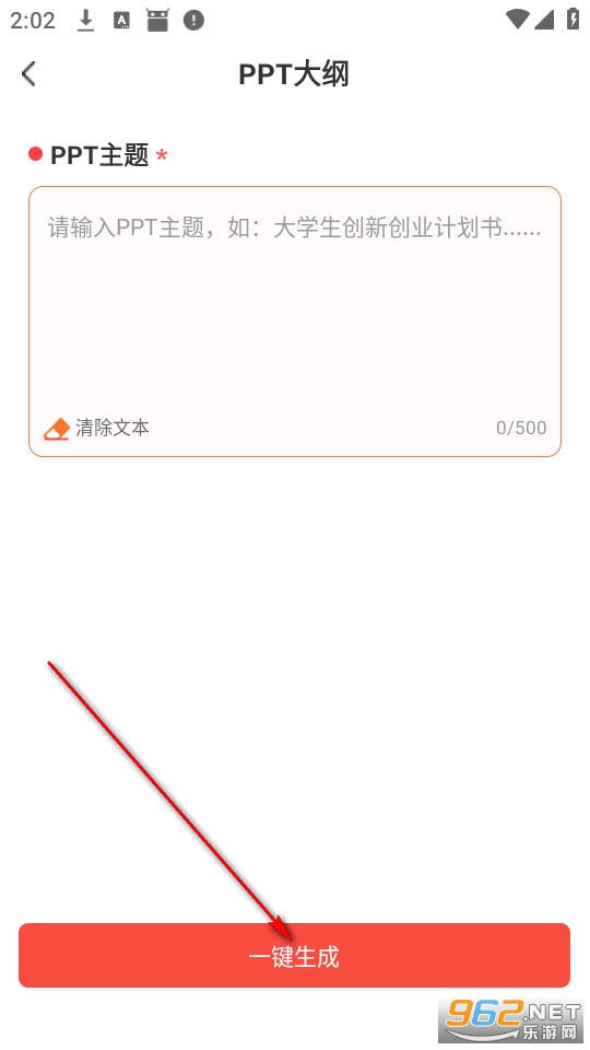 输入PPT大纲主题,点击一键生成。
