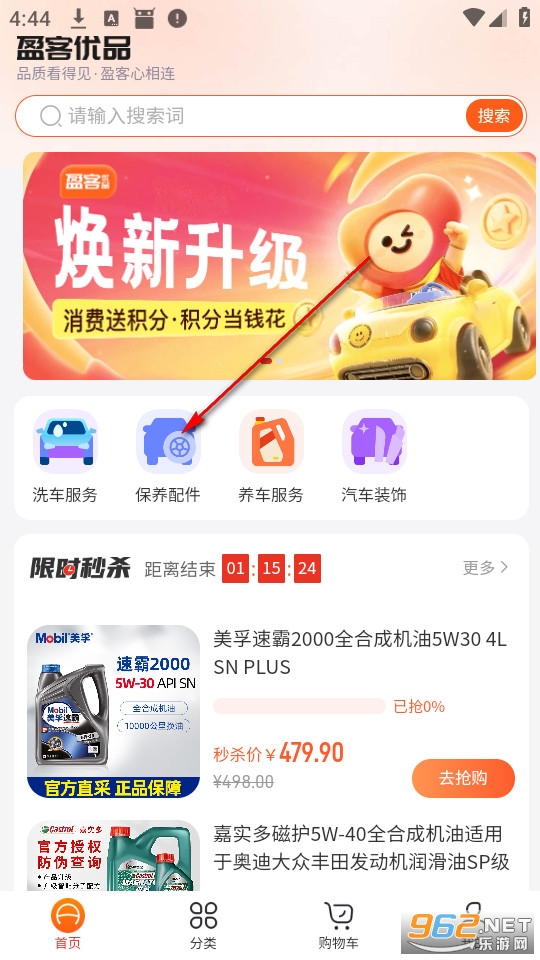 盈客优品app最新版是一款专注于各种汽车配件、用品的购物软件,软件中将各类商品详细分类,以便用户精准的查找自己需要的商品购买,还推出了限时秒杀优惠活动,让用户可以享受到活动优惠价,省钱抢购各种好物商品,其中的商品分别有家居百货、食品生鲜、养生保健、美容养护、保养配件、养车服务、汽车装饰等多样化的商品资源,超多的品质好货可以随时购买,明码标价的商品价格,拒绝隐形消费,在这里下单各种养车服务更加的实惠划算,为用户带来更加实惠的养车体验。