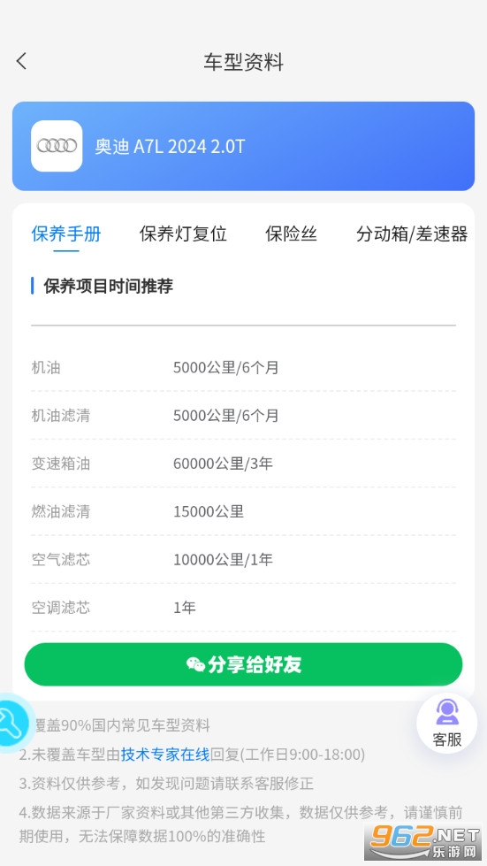 查看车型保养手册资料。