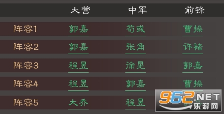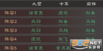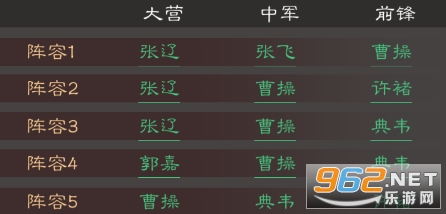3位武将组成一套阵容,前排、中军、大营布局决胜千里。