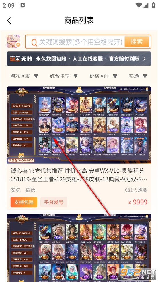飞衡代售严格审核每个卖家,保证每个账号的真实性和质量,同时提供终身包赔的服务,让用户无后顾之忧。在飞衡代售官方版中,用户可以轻松浏览各类热门游戏的账号信息,包括角色等级、装备、技能等详细内容,帮助用户快速找到符合需求的账号。