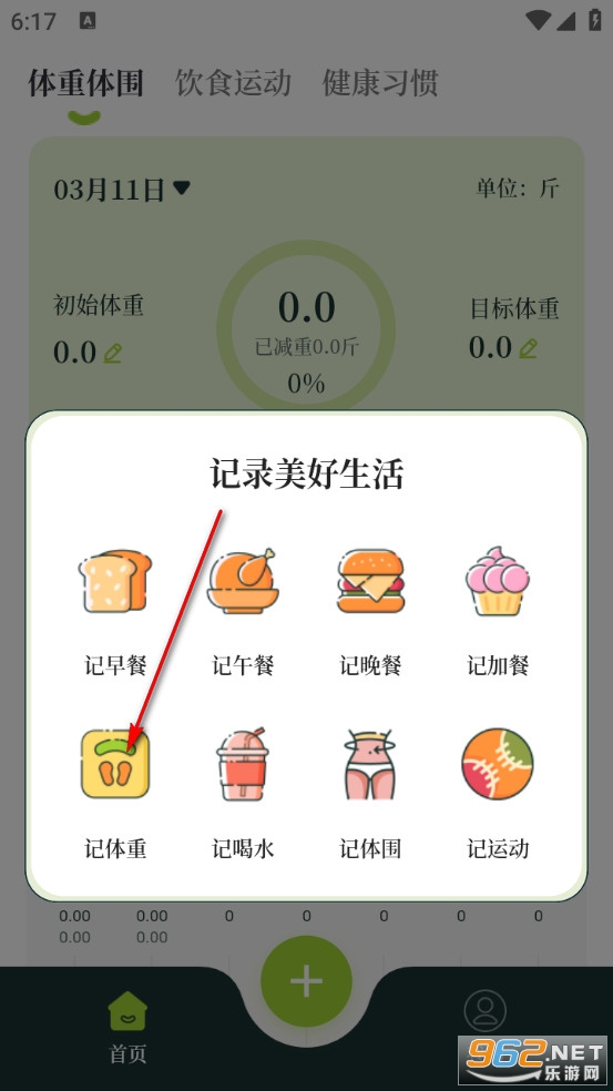 点击记体重。