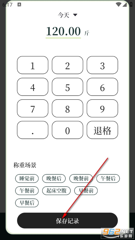 输入体重数值,点击保存记录。