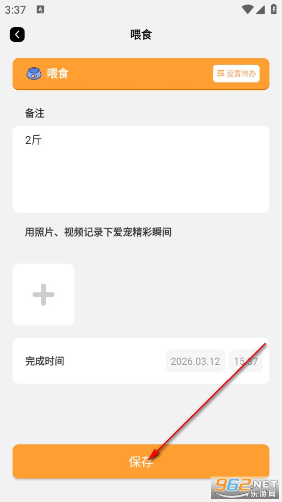 填写喂食记录后点击保存。