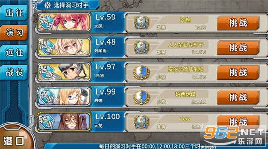 这里各位提督可以和其他提督的舰队一较高下,演习的主要作用其实是一个免费的经验包,因为在演习场中,玩家的舰娘们就算撤退也不需要修理的,并且也不需要补给。所以这里是一个免费的经验包,各位提督也不用在意演习的胜率,这个数值并没有什么实际的意义,只是一个记录而已。