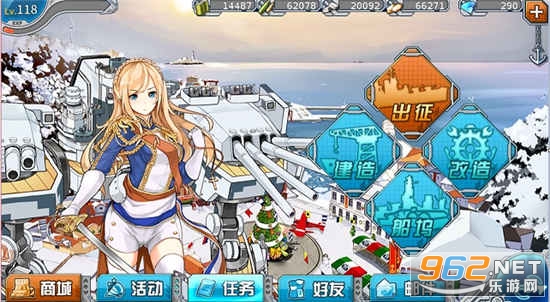 接下来让我们来看看主要的几个常用区块:出征、建造、改造、船坞
