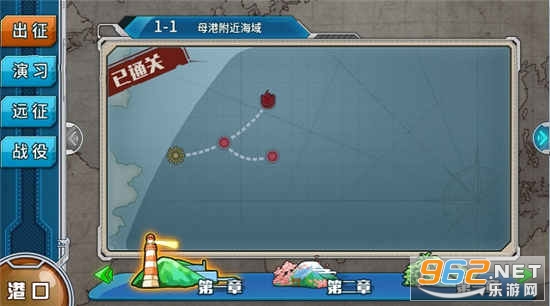 第一个出征就是最常规的推图,各位提督只要击败了每个地图的最终BOSS点的敌军就可以开启下一张海域地图。
