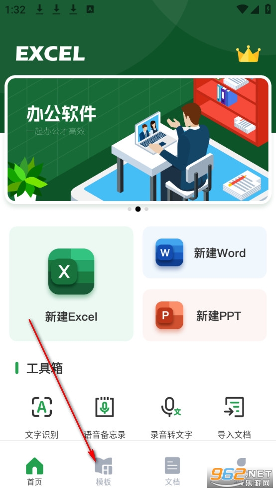 点击excel表格模版。