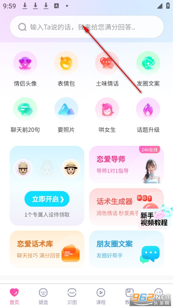 这是一款收录40W+话术的聊天小助手,集合可搜索恋爱话术,套路惯例与聊天实战,情侣头像、恋爱表情包、持续更新。