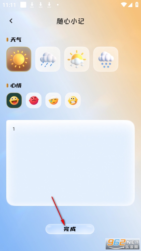 输入记事内容,点击完成。
